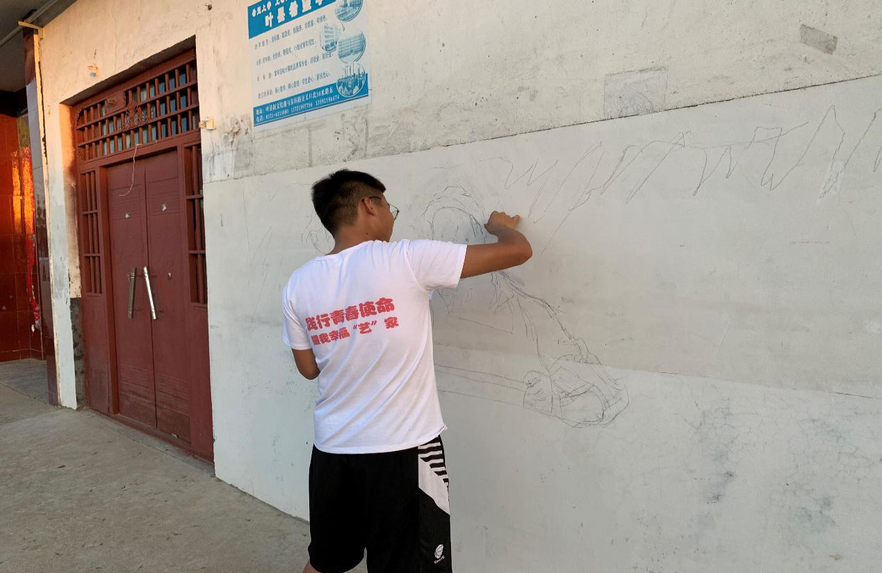 红色青春轻骑兵正在为西王庄村墙体进行设计