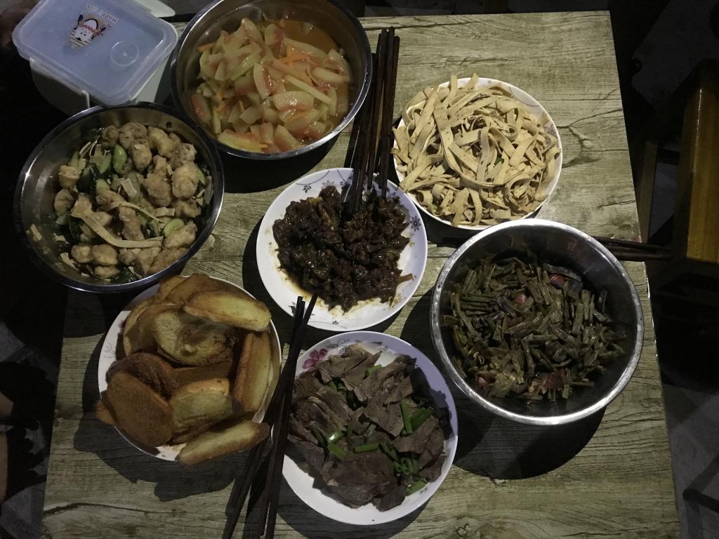 下午烈日迎头而上,工作了一上午的志愿者们简单吃了午饭,为了下午的进程持续,志愿者们就在乡政府服务中心大厅内稍事休息、调整状态。大约四点左右,外面已经开始降温,志愿者们就继续推进进度。志愿者们在一天中亲眼目睹了日出与日落,八点左右,天色渐转昏暗,志愿者们拖着一个个疲惫的身子回到了住处。通过大家的通力合作,一顿丰盛的晚餐从厨房里端了出来,大家对着眼前香喷喷的饭菜畅所欲言。晚饭过后,大家一起坐在广场上,听着村头放的歌,聊着我们儿时的故事。最后,大家总结了一下今天的工作,十几面墙体均完成起型任务,唯一的瑕疵就是个别的细节并不能做到十分完美,大家坚信在未来的几天中会精益求精,力争完美!