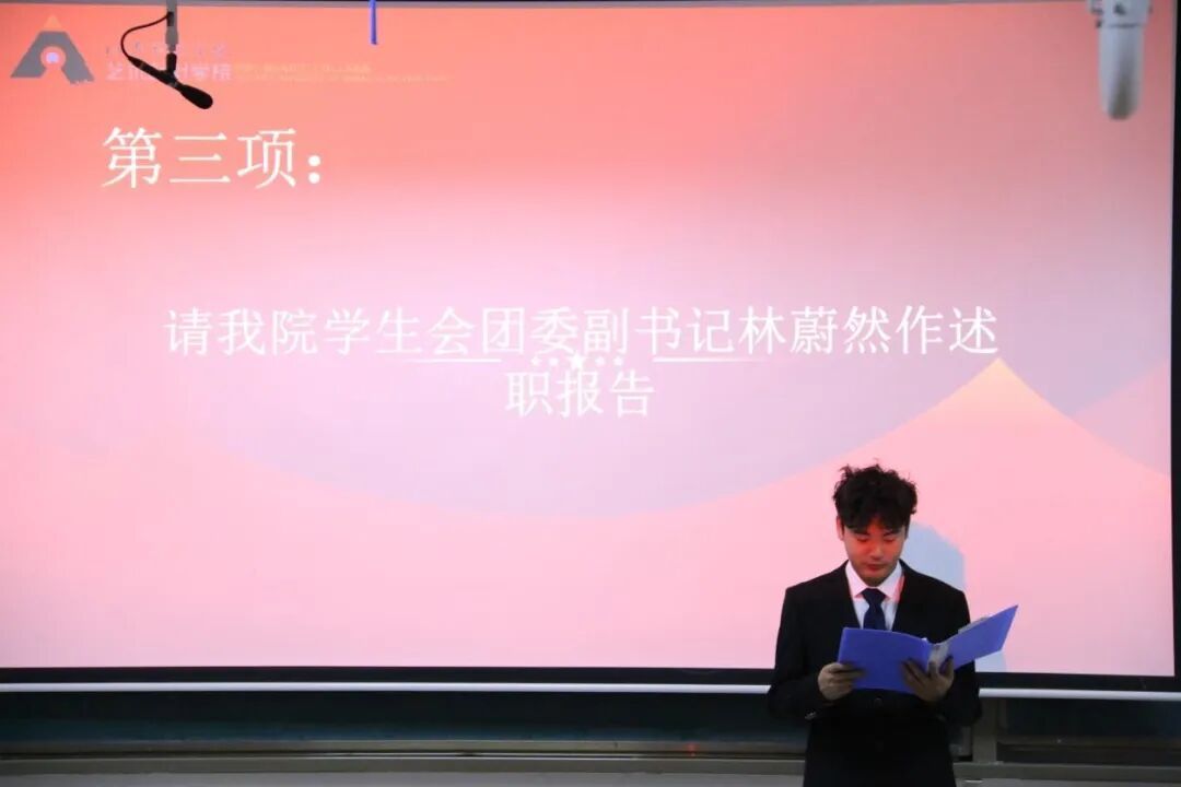 为深入贯彻落实立德树人根本任务,持续加强员工干部队伍建设,切实发挥员工会服务同学、凝聚青年的桥梁纽带作用。6月11日下午, 526会议室XC体育第七届学代会第六届团代会暨第十二届主任团竞选大会成功召开。团委办主任任融、团委办副主任张敬雨、公共艺术教研室副主任郭梦垚出席此次大会。此次大会由XC体育员工艺术服务中心董冠祥、丛诗琪主持,共150名与会代表参与。