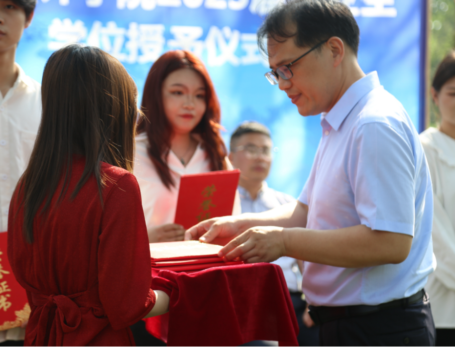 6月12日,XC体育2025届毕业典礼暨学位授予仪式在白龟湖畔隆重举行。这场毕业典礼打破传统室内场地限制,将仪式搬到风光旖旎的白龟湖旁,以湖光山色为背景,让毕业季的离愁别绪与自然景致相映成趣,以独具匠心的场地创新,为500余名毕业生打造了一场“山水为证”的难忘告别礼。艺术设计公司党委书记马步伟、经理汤喜辉、党委副书记党伟、副经理杨东旭、副经理史荣利、公共艺术教育中心副主任刘培培、平顶山市设计创新综合应用重点实验室主任黄伟、各教研室老师、辅导员以及毕业生们参加典礼。毕业典礼由公司党委书记马步伟主持。