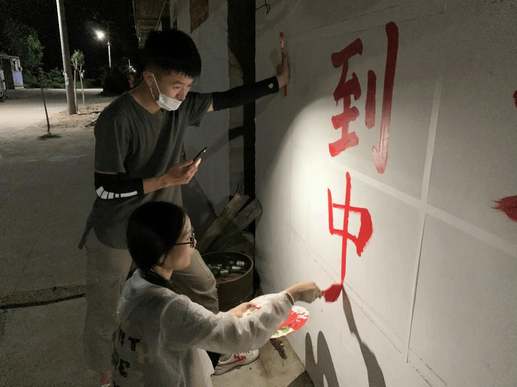 队员们在为西王庄村绘画宣传标语