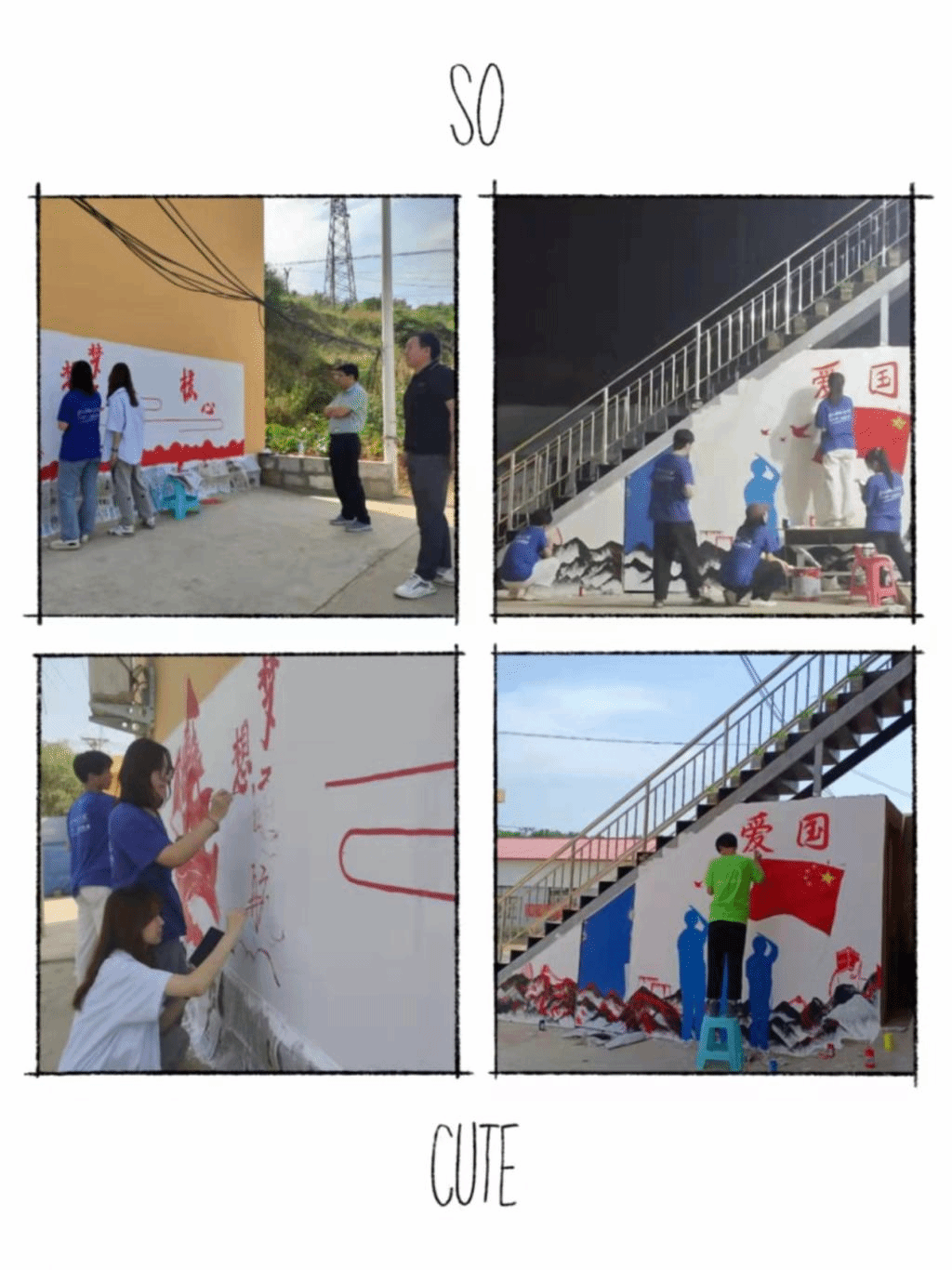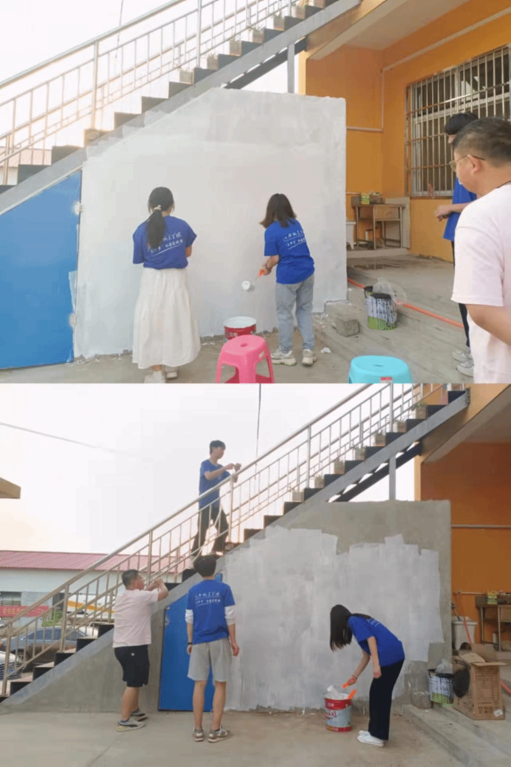 活动期间,大家先对当地的环境进行了解,对墙面进行第一步处理,增加墙面更加平整度,其次各位同学充分利用自己的专业优势,打造出更富有人文情怀的乡村氛围。