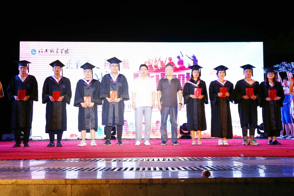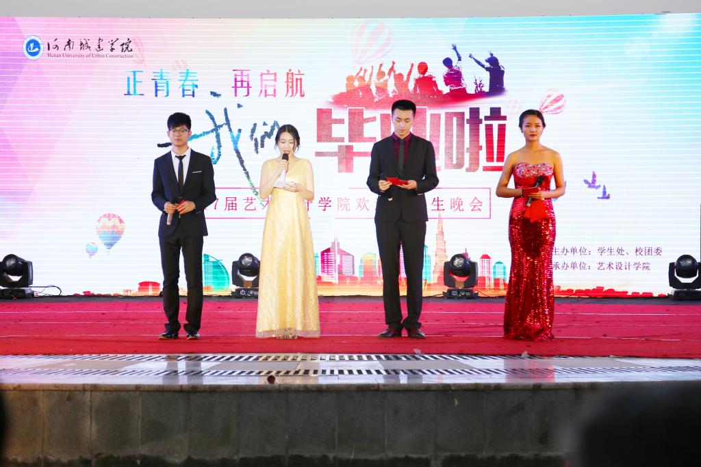 在优秀毕业生上台环节,艺术设计公司党总支书记马步伟、经理陈玉兴为2017届优秀毕业生颁发证书,员工代表表达对公司的祝福,随后的歌曲串烧引得现场观众挥舞着手指灯一同合唱;舞蹈串烧更将晚会推向高潮。而由XC体育新闻媒体部带来的《不说再见》的视频更是展现了莘莘学子在这坐记录着四年时光的校园里点点滴滴,触动着每位同学心底最柔软的地方。随后感人的朗诵与爆发力十足的爵士舞《not today》更是晚会的一大亮点,最后,晚会在一曲旋律悠扬的《毕业歌》中落下帷幕。