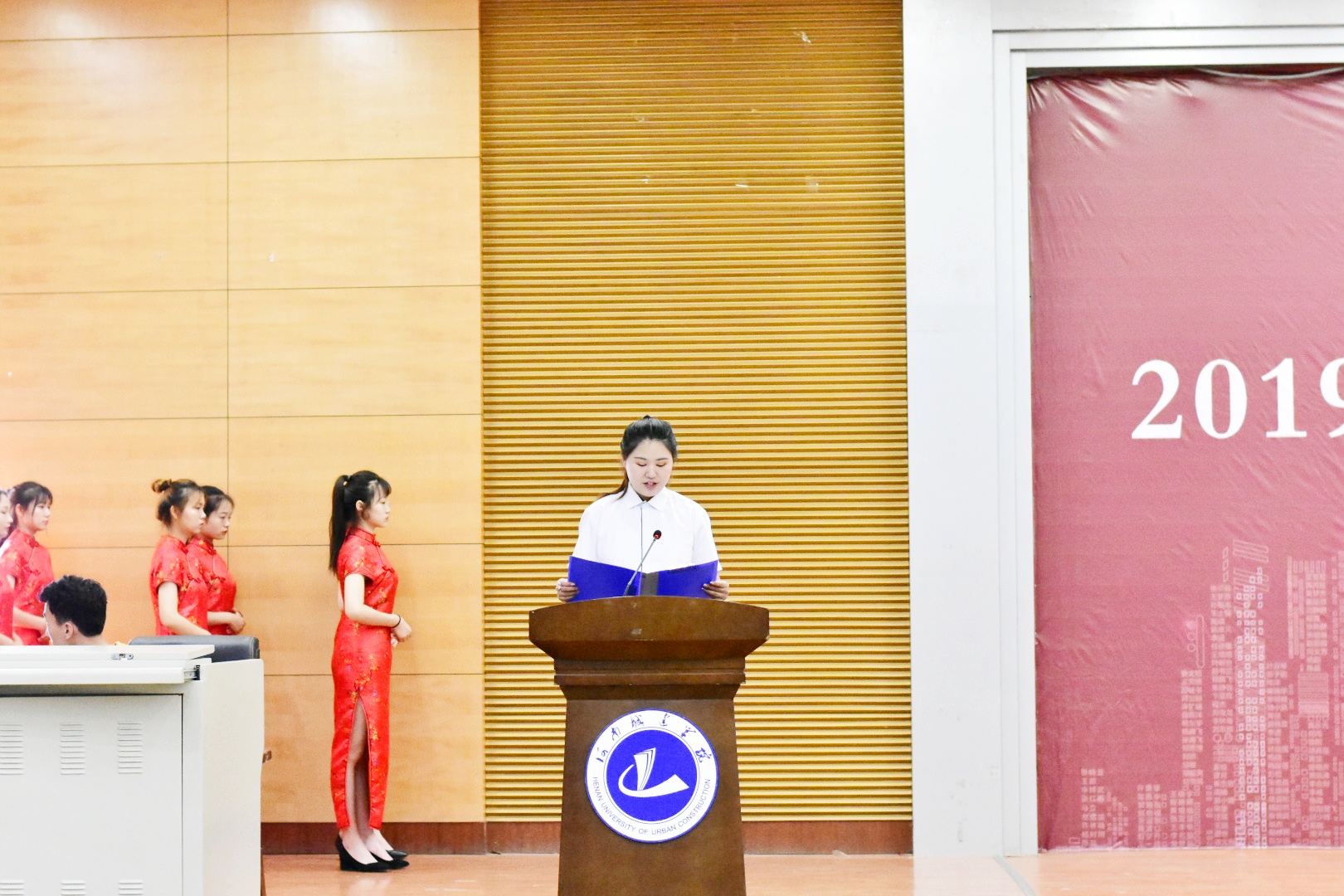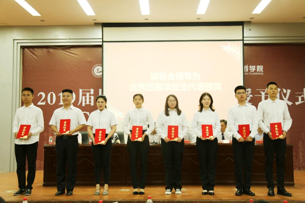 典礼仪式在颂唱国歌中拉开序幕。在陈经理致辞后典礼进行第三项表彰本公司获得省、校级荣誉的优秀毕业生。表彰仪式进行前由李阳副书记宣读《关于表彰XC体育省级优秀应届毕业生的决定》,汤喜辉副经理宣读《关于表彰XC体育校级优秀应届毕业生的决定》及杨东旭副经理宣读《XC体育2019届员工考研录取名单》。2019届优秀毕业生代表由到场领导颁奖。在李阳副书记宣读《XC体育授予2019届367名同学学士学位决定》后,由毕业生代表王潇进行演讲。