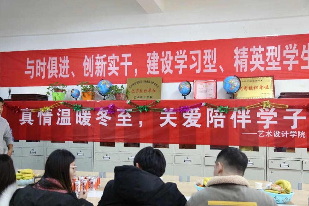 为了关爱陪伴学子,营造温暖校园气氛,在寒冷的冬天,温暖学子的心。2019年12月20日下午三点半,在和谐校区一号教学楼527教室里举办了一场冬至座谈会。党总支书记马步伟,团总支书记党伟,学工办杨冬梅老师,刘龙琳老师,李源雨老师,倪明老师,吴婉莹老师,XC体育部分贫困生,万米优秀运动员以及员工会成员。