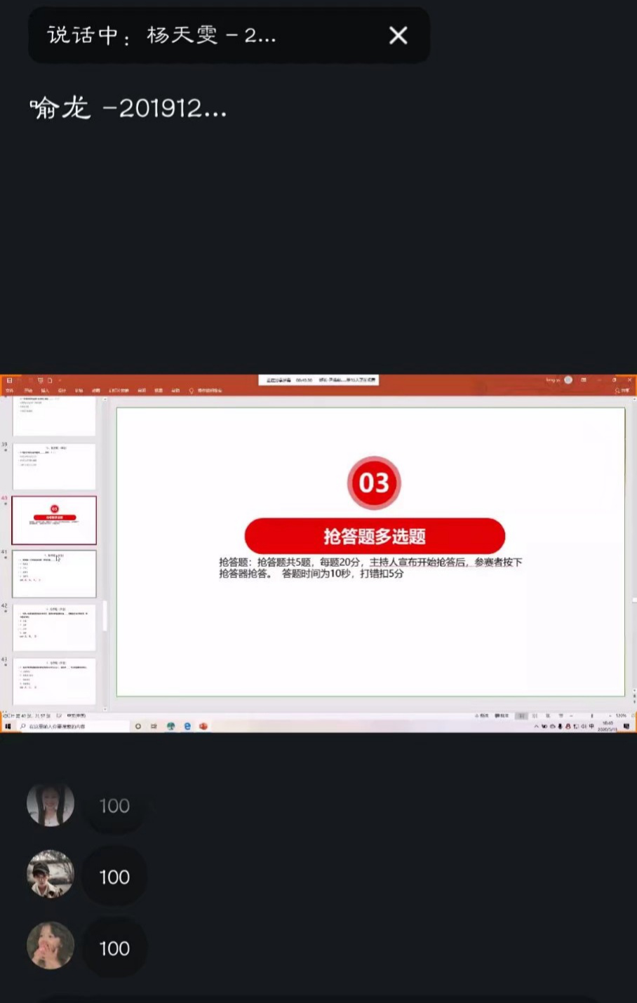 本次活动分初赛和决赛两部分,初赛在学习通上进行线上答题,决赛采用线上直播、答题。即使是因为疫情,同学们无法顺利返校,但还是大家还是表现出了极大的积极性,对活动的进行,也极其配合。在决赛时,参赛选手也都展现了对防灾减灾知识的熟练程度,反映了选手们对防灾减灾知识的重视。