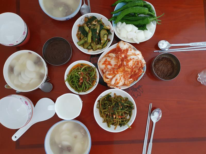 在线下调研中,服务团以朝鲜族特色风味饮食作为切入点与着重点,通过朝鲜族的特色饮食来深入了解朝鲜族的民族精神及其传统文化。朝鲜族风味小菜很有特点,以腌、拌为主要形式,尤其著名的是腌小菜,这是一年四季不可或缺的。朝鲜族很讲究腌,各家为腌小菜都备有大小不同的坛缸,腌菜有白菜、萝卜、缨菜、黄瓜、茄子、大头菜等,其中以辣白菜最为有名。朝鲜族节日中的文体活动大都通过饮食来展开,并通过不同的节日饮食来体现不同的节日气氛,如上元节吃药饭、喝聪耳酒、喝菖蒲酒,秋夕吃打糕松饼,冬至吃小豆粥等,节日中的特色饮食也成为了节日文化的一部分。朝鲜族饮食文化作为一种在特殊的历史背景和自然条件下形成的民俗文化,已不仅仅是简单的吃喝问题,实际上已成为朝鲜族民族内部深层文化的积淀,有着十分深厚的民族情感与文化定义,成为了朝鲜族民族凝聚力的重要源泉。