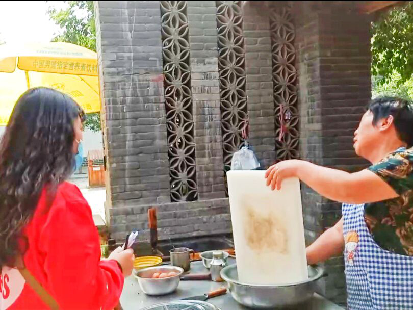 团队成员走访街边小铺进行收益情况调查及当地村民咨询脱贫建议
