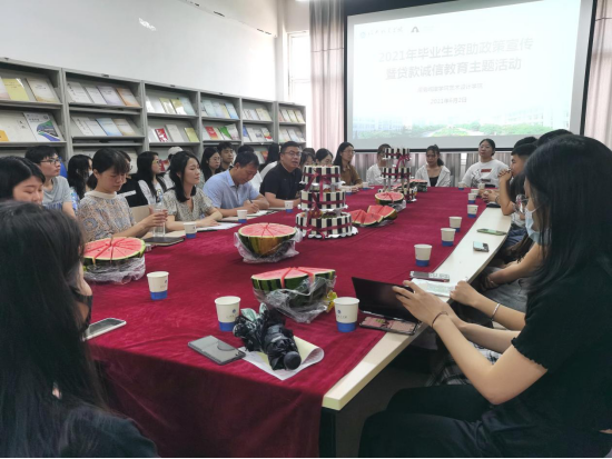 活动中,党委副书记郭亚举指出,国家、社会、公司的资助是实现教育公平、促进社会公平的一种制度安排和重要举措,引导员工树立诚实守信的良好风尚。团总支副书记党伟为员工讲解了金融诚信知识,引导员工进一步提高金融认知能力、金融风险识别能力,增强防范意识。公司团总支副书记李源雨为与会员工详细讲解了助学贷款还款流程规则,贷款展期、入伍代偿、服务基层贷款代偿政策等,帮助员工了解贷款违约产生的严重后果,提醒员工提高征信意识,促进员工重视个人信用记录,提醒员工及时履行国家助学贷款还款义务。公司特地为贷款员工准备了“诚信”蛋糕和西瓜,夏日炎炎,西瓜带来清爽、蛋糕带来甜蜜,员工们在分享美味的同时也牢记诚信。