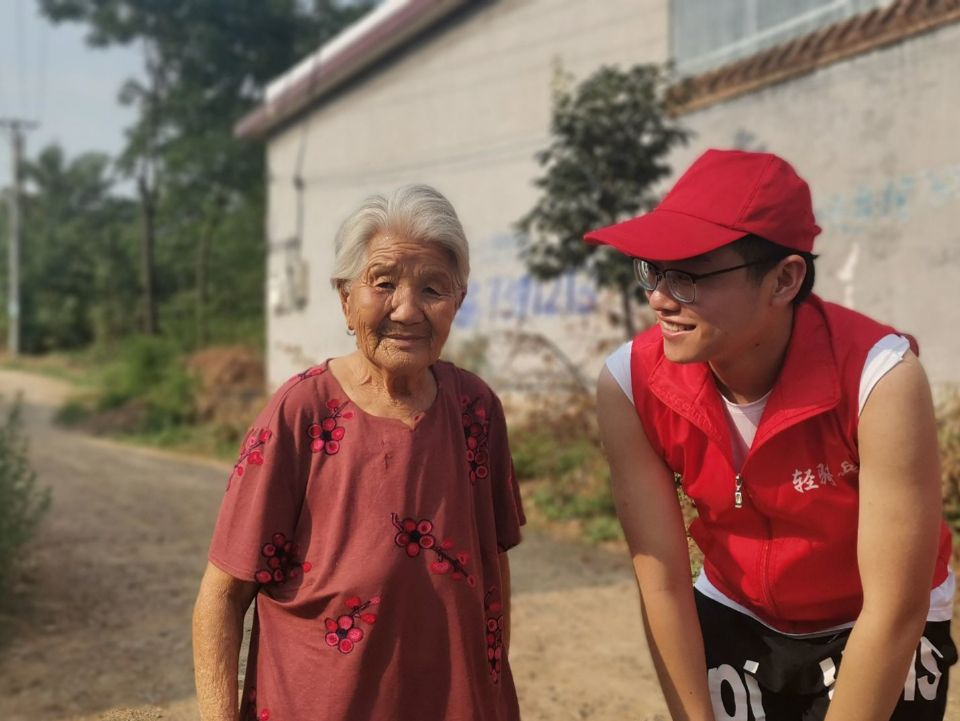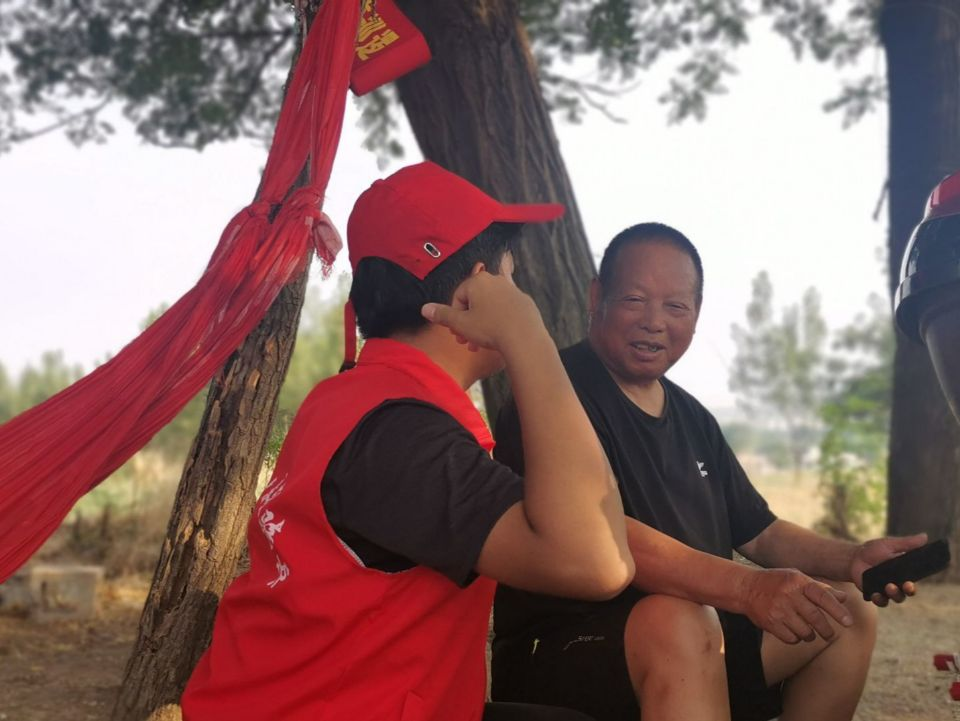 图为实践团成员在岳庄村了解当地老人的生活情况