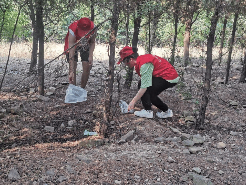 结束调研后,团队决定对岳庄村附近的大山进行一次清洁活动,分组协作,深入大山内部尽绵薄之力将垃圾带走,还大山一个整洁干净。