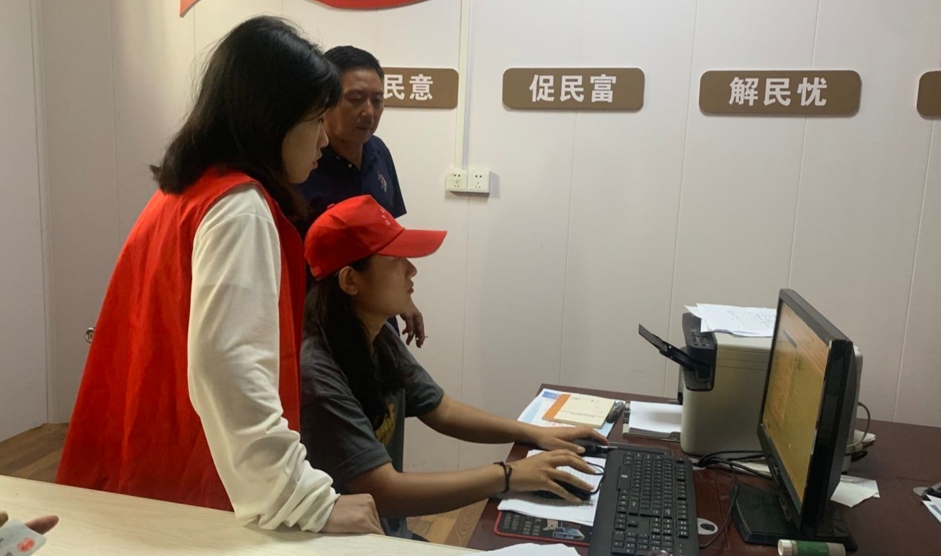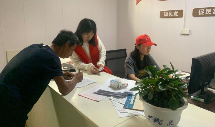 图为志愿者耐心为村民解决问题