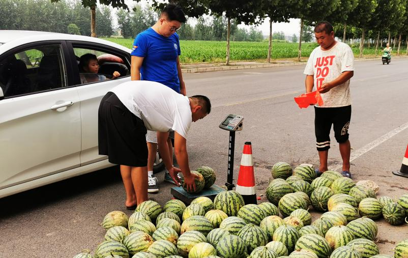 图为志愿者帮助瓜农卖瓜