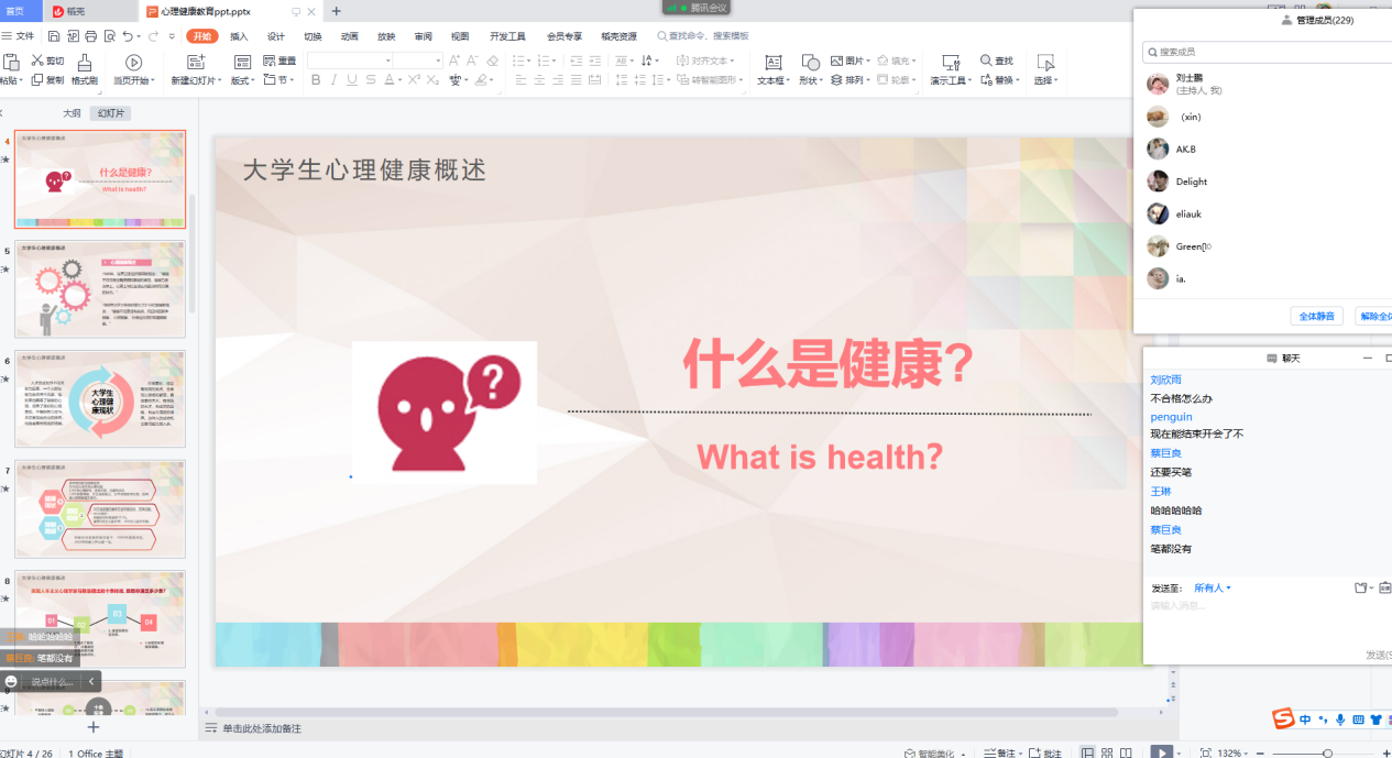 为提升大一新生的心理健康素养,普及心理健康知识,促进大一新生身心健康发展,2022年9月5日,XC体育召开了以“心灵启航,携手同行”为主题的新生线上心理班会。
