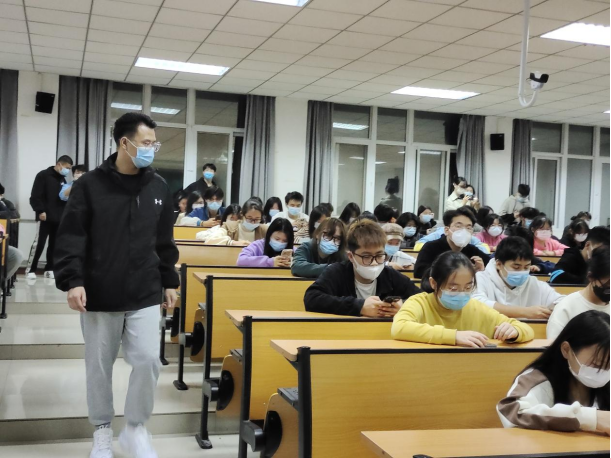 在考试开始之前,辅导员刘士鹏老师对员工介绍此次考试的重要意义和相关注意事项,要求每位同学严格按照疫情防控相关要求,保持位置间距,在考试中认真思考、仔细作答。考试期间,员工会主席团成员认真监考,维持考试秩序。考试结束后,同学们纷纷提交试卷,有序离开考场。