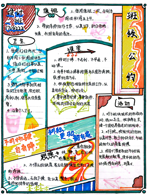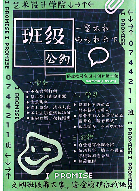 在此次班级文明公约设计大赛活动中,体现了XC体育学子优秀的学习素养和努力奋斗的学习态度。相信在班级公约的指引与监督下,同学们能够不断完善自我,互帮互助、互相监督,共同发展进步,共同为营造良好的学习学风而不断努力。