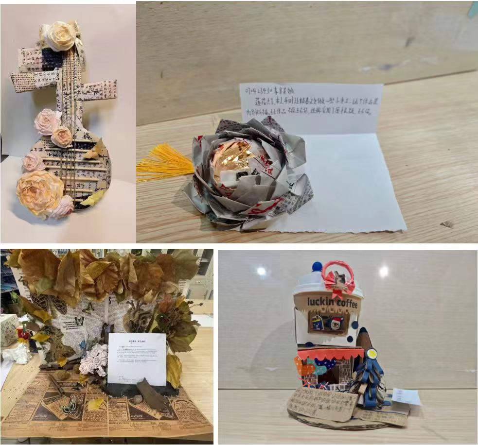 活动现场,展示区里摆满了各种各样的“变废为宝”作品。废旧物品在参与者的手下焕发出新的生机。那些原本应该被丢弃的饮料瓶,经过精心裁剪和拼接,变成了造型精致的房屋模型。废旧纸箱被制作成可插花的花瓶。同学们为自己的作品冠以名字,写下创作思路的同时为环保留下浓墨重彩的一笔。