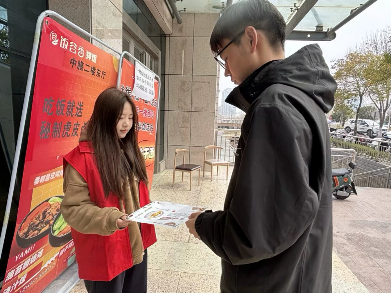 在宣传光盘行动的过程中志愿者们在校园食堂、教学楼、宿舍等人流量大的区域张贴“光盘行动”海报,发放印有光盘行动标语的宣传单。利用校园广播、公众号定期推送节约粮食小知识、介绍粮食生产艰辛,传播节约理念,增强员工节约意识。并且积极热情向路过的同学宣传节约粮食的重要性和正确做法,确保信息传达的准确性和高效性,呼吁更多同学们加入到节约粮食的行列,保障了此次活动的顺利进行。