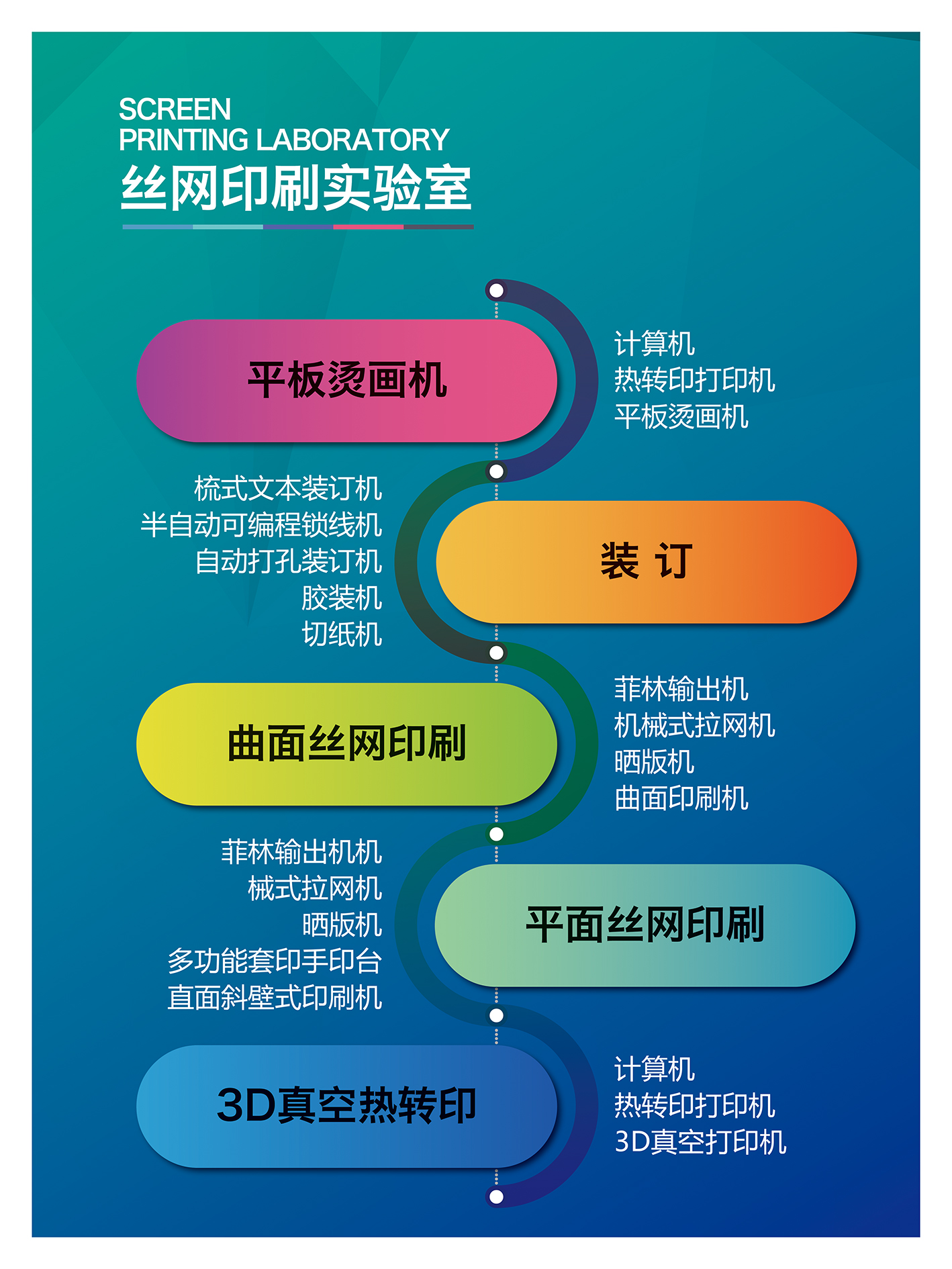 XC体育共计6个实验室,分别为产品技术实验室,装饰构造与材料展示室,数字艺术实验室,三维动画实验室,基础造型实验室,丝网印刷实验室。拥有一个科研实验室,平顶山市设计创新综合应用重点实验室。面积共计约1100平方米,资产总额约650万元,承担实验室项目50余项,每学年实验学时达140000人时数。