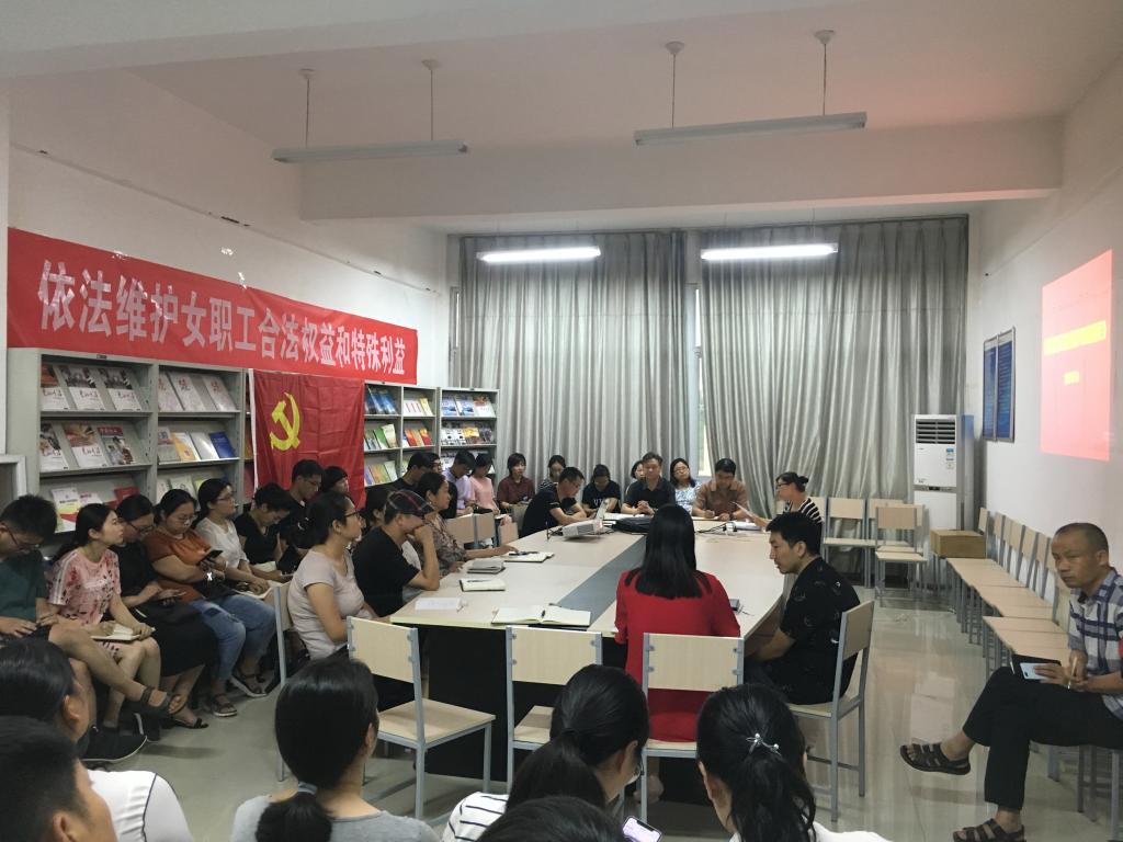 6月26日下午,XC体育分工会举行女职工维权月活动,党总支副书记李阳讲为全体教职员工讲《妇女权益保障法》《妇女劳动保护特别规定》。