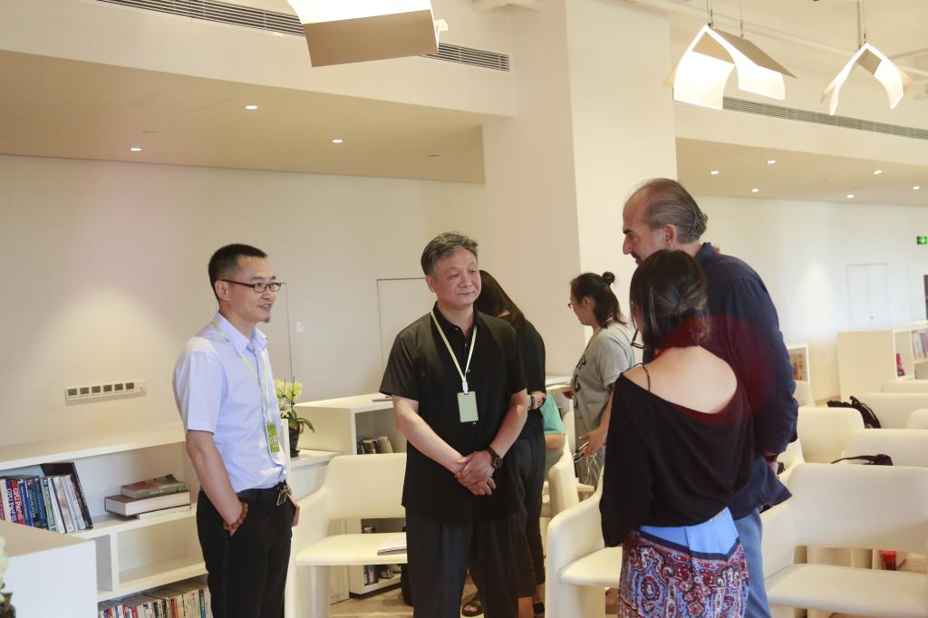 开幕仪式后,德稻公司的建筑设计大师(上海世博会巴西馆总设计师)龙百渡讲解了《以实际课程方案为例,介绍大师班课程设置及专业教学》。龙百渡大师介绍了龙百渡大师班项目制教学的运作方式、课程设置、教学方法等教学情况,同时讲述了运用可易接性、可连接性、可持续性、人文科学、身份识别等五大设计理念进行建筑和室内设计创作的案例,并多次强调作为设计师的道德观和责任感,以及以人为本、为未来做设计的重要性。在上午课程结束后,大师为参加培训的老师解答各种问题和疑惑,双方还在轻松氛围中就设计教育的改革课题进行了意见交流。课后陈玉兴诚挚邀请龙百渡大师再来公司进行讲学,龙百渡大师愉快的接受了邀请。
