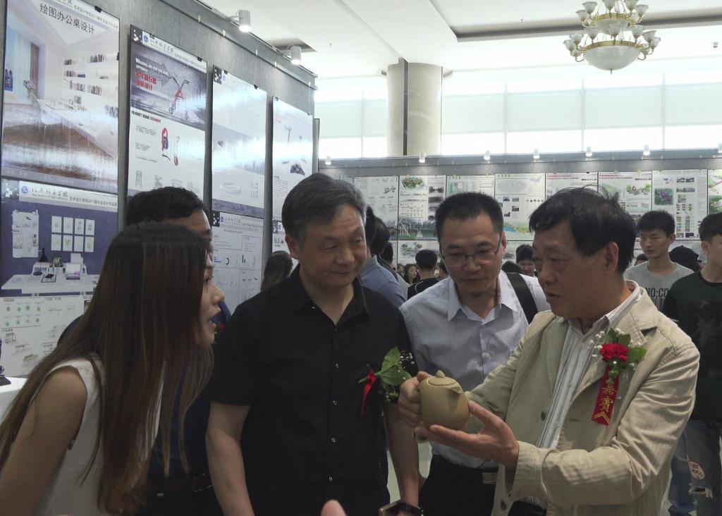 开幕式后,许朝民及行业专家仔细参观了毕业生作品,详细询问了员工的设计理念,充分肯定了毕业设计质量,从创意理念、风格类型、表现手段到材料革新等方面,高度评价了师生们的作品。他鼓励公司师生努力把优秀设计转化为生产力,创造社会价值,并要求公司把握好时代发展方向,秉承办学特色,结合公司实际,全面深化综合改革,坚持以市场需求为导向,实现转型提升。