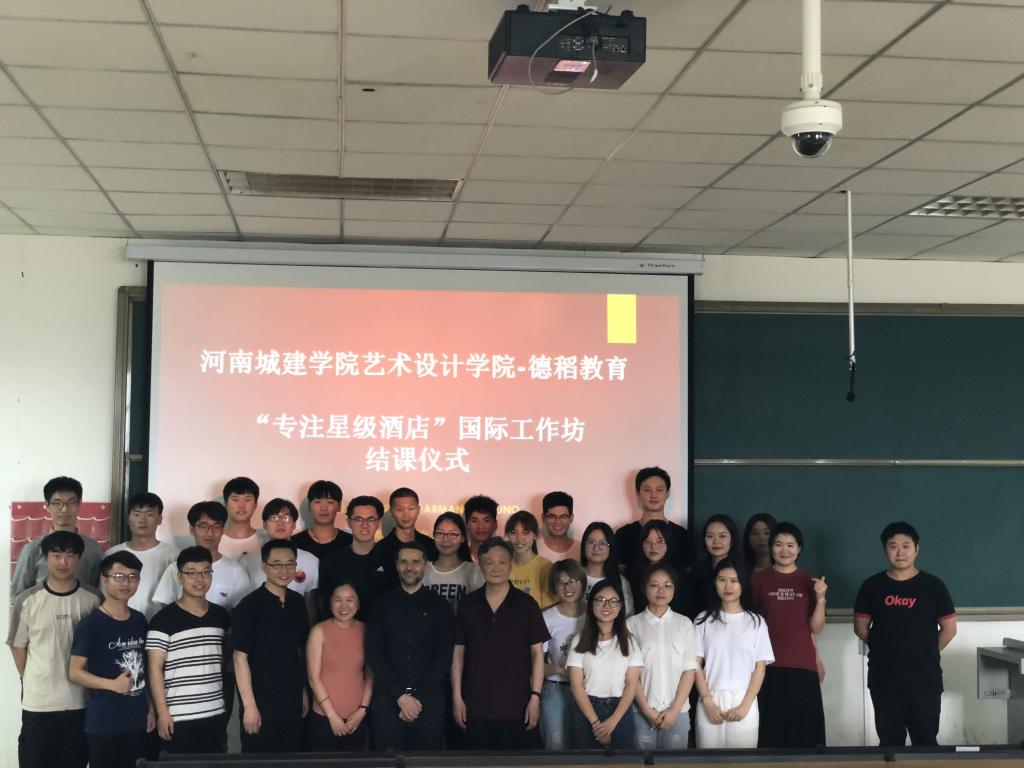 本着“汇聚世界大师、采集全球智慧、培育行业精英、助力企业发展”的教育理念,为提高环境设计专业员工的设计技能,开拓同学们的国际视野,以国际课程形式实施专业教学,实现高校与行业共同发展,XC体育与德稻教育集团合作开展的大师工作坊于5月22日上午在文管校区524教室如期开幕,为期5天,副董事长赵金安、经理陈玉兴、副经理汤喜辉及室内设计专业部分师生参加开课仪式。