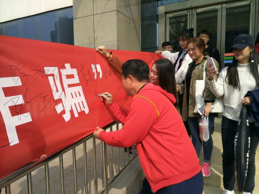 活动现场整齐有序,整个活动形式新颖,主题突出,准备充分。XC体育的同学们热情高涨,踊跃参加。现场气氛十分活跃,XC体育的同学们纷纷在活动横幅上签上自己的名字,为“反传销,防诈骗”活动表明拒绝诱惑,远离传销的决心。