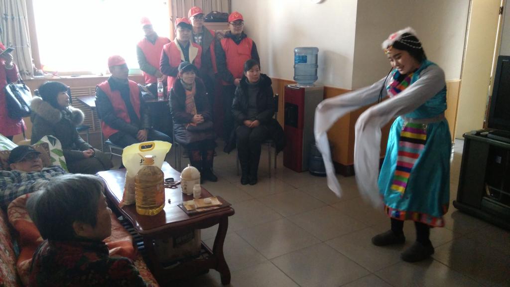 活动中,艺术公司青年志愿者分别看望慰问了王马山、王书方、余光慈等空巢老人,为他们送去了大米、食用油等生活用品,帮助老人们打扫了卫生,和老人们一起聊天,分享了公司里的快乐生活和奇闻趣事,并表演精心准备了藏族舞等民族歌舞。王书方老人拉着志愿者的手激动地说:“家里很久都没有这么热闹过了,谢谢城建的孩子们,这真是办在身边的小春晚啊!”