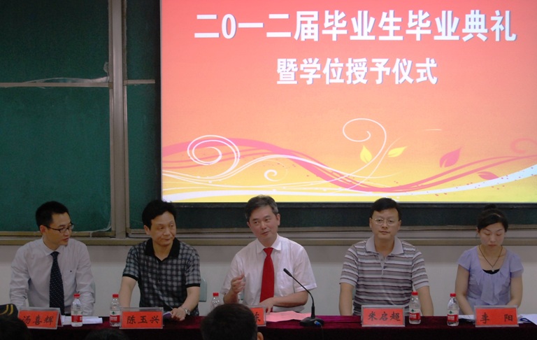 6月6日下午,艺术系2012届毕业典礼暨学位授予仪式在文管学区1号教学楼528举行。公司党委副书记王召东教授、系党总支书记米启超、副主任陈玉兴、副书记李阳、副主任汤喜辉及学工办、团总支、辅导员、2012届全体毕业生、部分在校生代表参加此次典礼。典礼由米启超主持。
