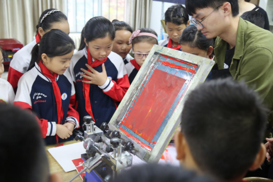 作为本次XC体育六个参观点之一,印刷艺术工作室负责人王玉婷老师带领工作室师生积极筹备本次科普活动,迎接师生参观了印刷艺术工作室,员工们认真聆听实验员对印刷工艺的讲解,现场气氛热烈,师生欣赏了XC体育员工印刷艺术作品,并高度评价。随后,师生走进了数码印刷实验室,观摩并体验了丝网版画的印刷过程,现场反响热烈,员工均跃跃欲试流连忘返,最后,通过对丝网印刷、热转印等各种技术的体验开拓了师生的艺术视野,提升了员工们对艺术和科技的兴趣,埋下了艺术萌芽的种子,活动结束时部分员工纷纷表示,长大后要成为艺术家和科学家,此次活动取得了良好的科普宣传效果。