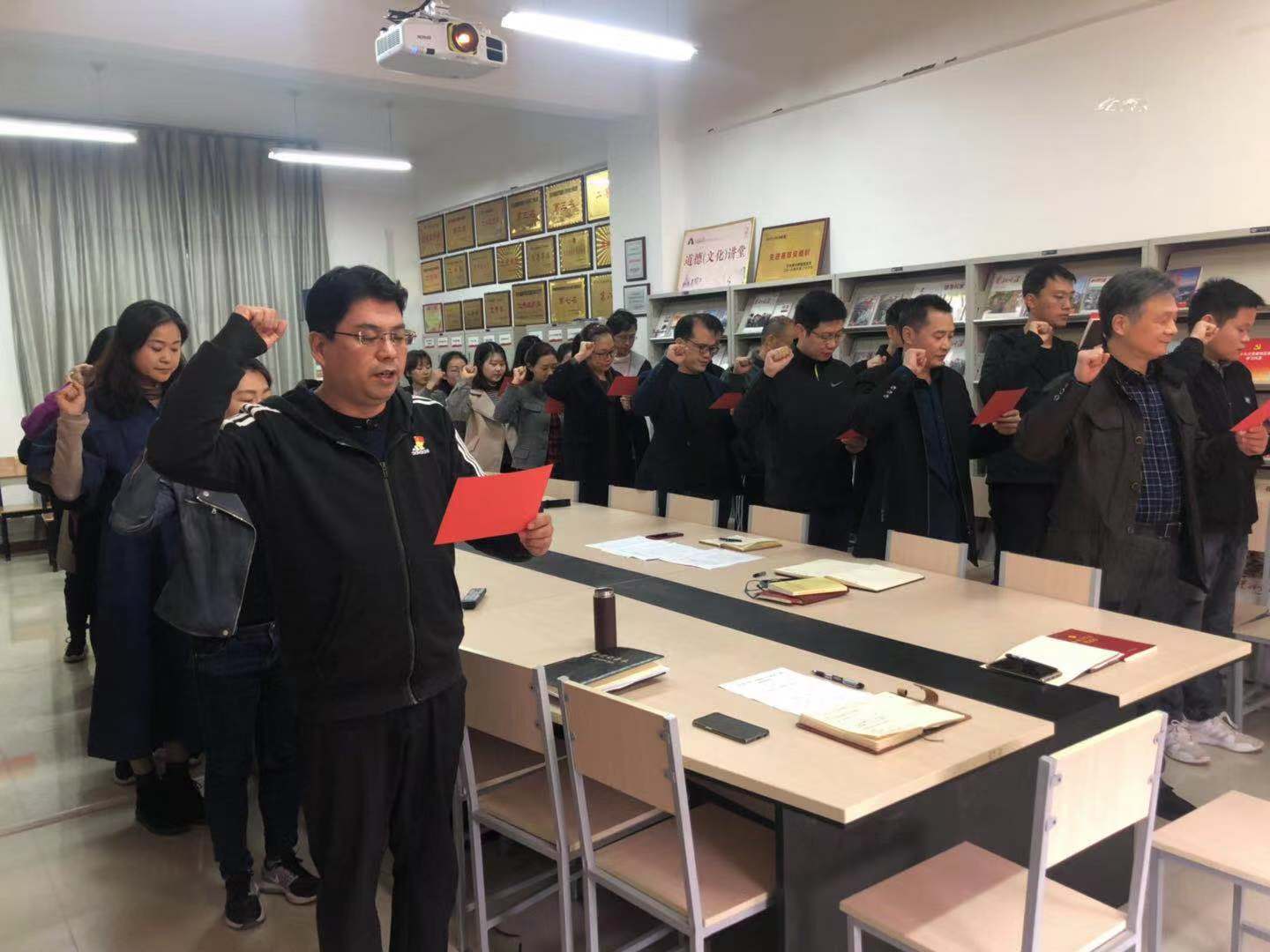 会议一开始,党总支书记马步伟带领老师们重温了河南教师誓词。一句句铿锵有力的誓词,一句句庄严地承诺,表达了广大育才教师决心以实际行动,争做人民满意教师的坚定信念。