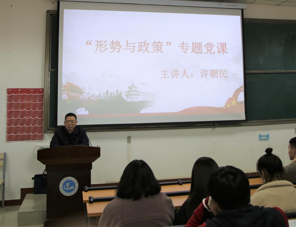 (通讯员:魏艺璇)为进一步贯彻党的十九届四中全会精神,深入有效开展理想信念教育,扎实推进主题教育取得实效,2019年12月27日下午两点半在XC体育和谐校区一号教学楼526教室开展了“形势与政策”专题党课教育活动。本次党课由公司党委副书记、工会主席许朝民主讲,XC体育和法公司中共党员、中共预备党员和员工代表参加了本次专题党课。