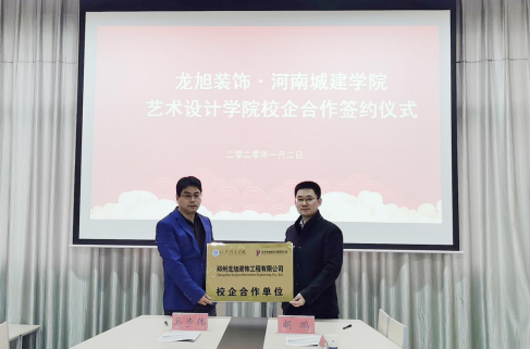 最后,马步伟与胡鹏代表校企双方签署了战略合作协议,胡鹏向马步伟进行了“郑州龙旭装饰工程有限公司-XC体育校企合作基地”授牌。仪式后,胡鹏一行参观了公司工作室及专业教室等地。