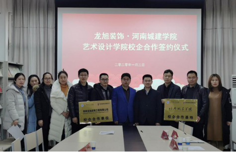 2020年1月2日上午10点,XC体育与郑州龙旭装饰工程有限公司于613会议室举行了校企合作签约仪式。龙旭装饰公司总经理胡鹏、设计总监赵广栋、工程总监江春雷、行政人事经理何桂梅、行政人事主管潘媛媛,XC体育的书记马步伟、副经理汤喜辉、杨东旭、科研与校企合作办主任徐艳秋、科研秘书吴婉莹、环境设计教研室主任孙淼及部分专业教师出席了仪式,仪式由汤喜辉主持。