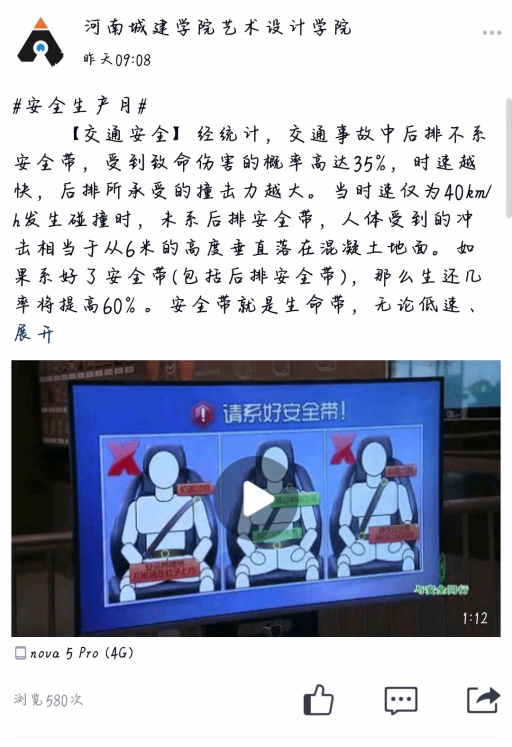 在活动期间,在XC体育的公众号上每天都会推出安全教育知识与课程,供同学们学习。交通安全、下水安全、防震知识、海姆利克急救法等等,每一种方法都在供我们学习的同时,教会了我们如何做到真正的安全。通过此次学习,让我们深刻的了解到安全生产的重要性。所以我们在日常生活中一定要增强安全防范意识,提高预防事故的能力,时刻注意安全生产的重要性。