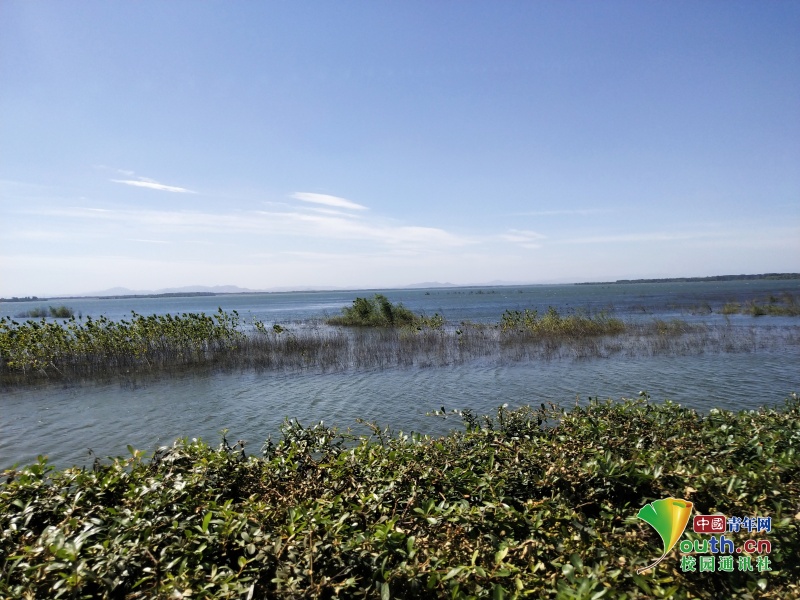 团队成员在对平顶山白龟湖的调查研究中发现,白龟山水库是平顶山市城市饮用水水源地,水质较清,但是临近生态走廊的库底仍大面积长着一人多高的杂草,俨然一片“草原。总体来说,水天一色,碧空万里。