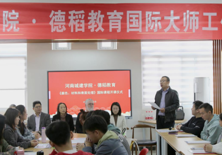 (通讯员 吴婉莹)11月1日上午,上海德稻公司罗德大师国际工作坊开课仪式在公司文管校区李诫书院二楼活动室举行。公司副董事长吴晓红、教务处处长何宗耀、李诫书院书记王森出席仪式。XC体育经理郭汝、副经理汤喜辉、副经理杨东旭、产品设计系主任王璐、产品设计教师齐建春、科研秘书吴婉莹及产品设计专业的36名员工参加开幕仪式,本次开幕式由郭汝经理主持。