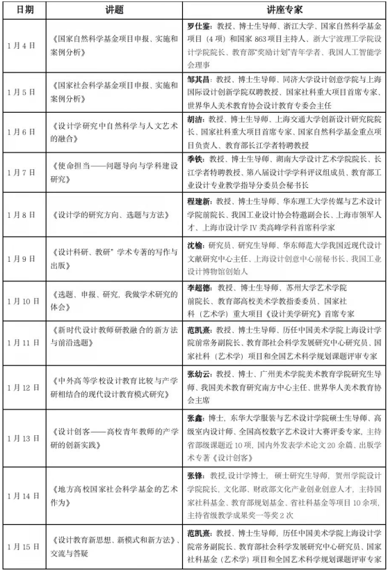 全国高校数字艺术设计大赛组委会联合工业和信息化人才测评服务中心(NACG)、浙江大学、同济大学、山东大学、湖南大学、北京科技大学、北京理工大学、华东理工大学、华东师范大学、我国美术公司、广州美术公司等单位多名资深艺术设计科研、教研”领域的专家教授,在全国著名高校艺术设计学科新老院系负责人、学科带头人等专家大咖的支持下,推出全国高校教师艺术设计科研、教研”高级研修班帮助大家理清思路、更新知识,提升艺术设计教育工作者对普通高等公司艺术设计科研、教研”的有关方法和能力。