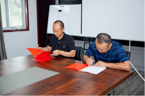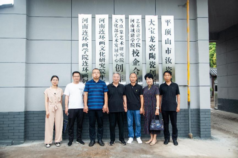 接下来,校企双方代表签署合作意向书,并进行揭牌仪式和合影。仪式结束后,企业工作人员热情地带领公司教师参观汝瓷烧制场地,双方就文创产业未来发展趋势进行探讨与交流。