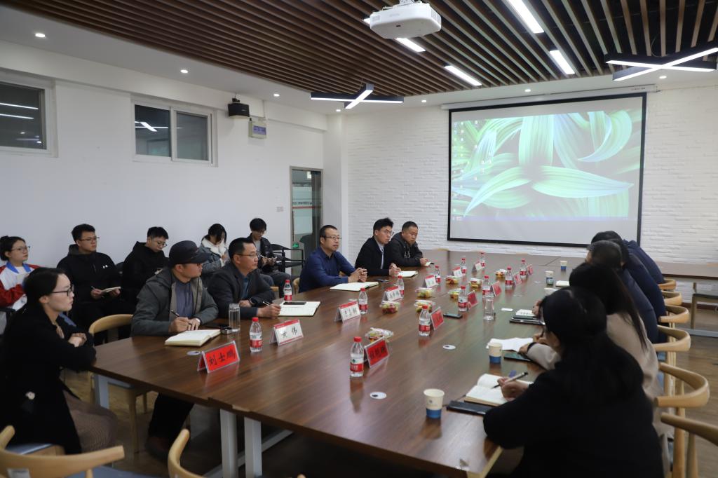 3月12日下午,平顶山市园林中心党委书记、主任冯建东,总工程师张爱玲,高级工程师方伟迅,发展规划科科长杜艳珊;平顶山市绿地(公园)事务中心主任张了夫、平顶山市绿地(公园)事务中心副主任李洋一行领导莅临公司;艺术设计公司党委书记马步伟,经理郭汝,副书记党伟,副经理汤喜辉,设计创新综合应用研究中心主任黄伟,平顶山市城乡更新设计与虚拟仿真重点实验室副主任马爱民及师生代表共同出席座谈会。