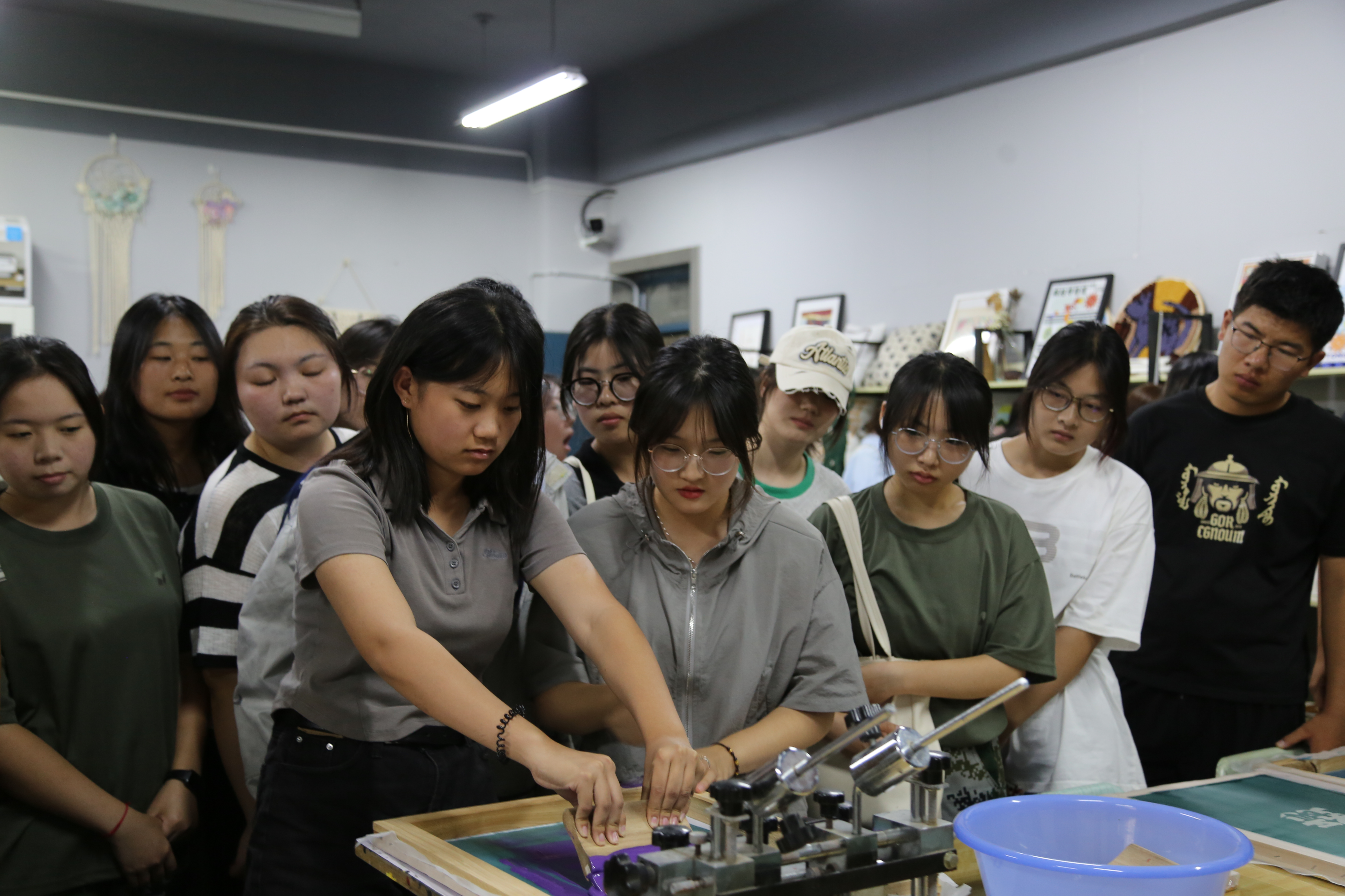 随着活动的逐步展开,同学们参观了丝网印刷实验室,王丹老师详细地为同学们展示了实验室的印刷艺术作品,同学们积极参与其中,展现了浓厚的兴趣和求知欲。活动的最后,王丹老师耐心地向员工传授了丝网印刷的基本流程和技艺,让大家亲身领略到这项传统工艺的独特魅力。同学们兴致勃勃,纷纷拿起工具,在老师的悉心指导下,亲自上阵实践。不久之后,一幅幅精美绝伦的印刷作品便展现在众人面前。活动现场气氛热烈而融洽,同学们互相交流着学习心得和体会,分享着各自的创作成果。
