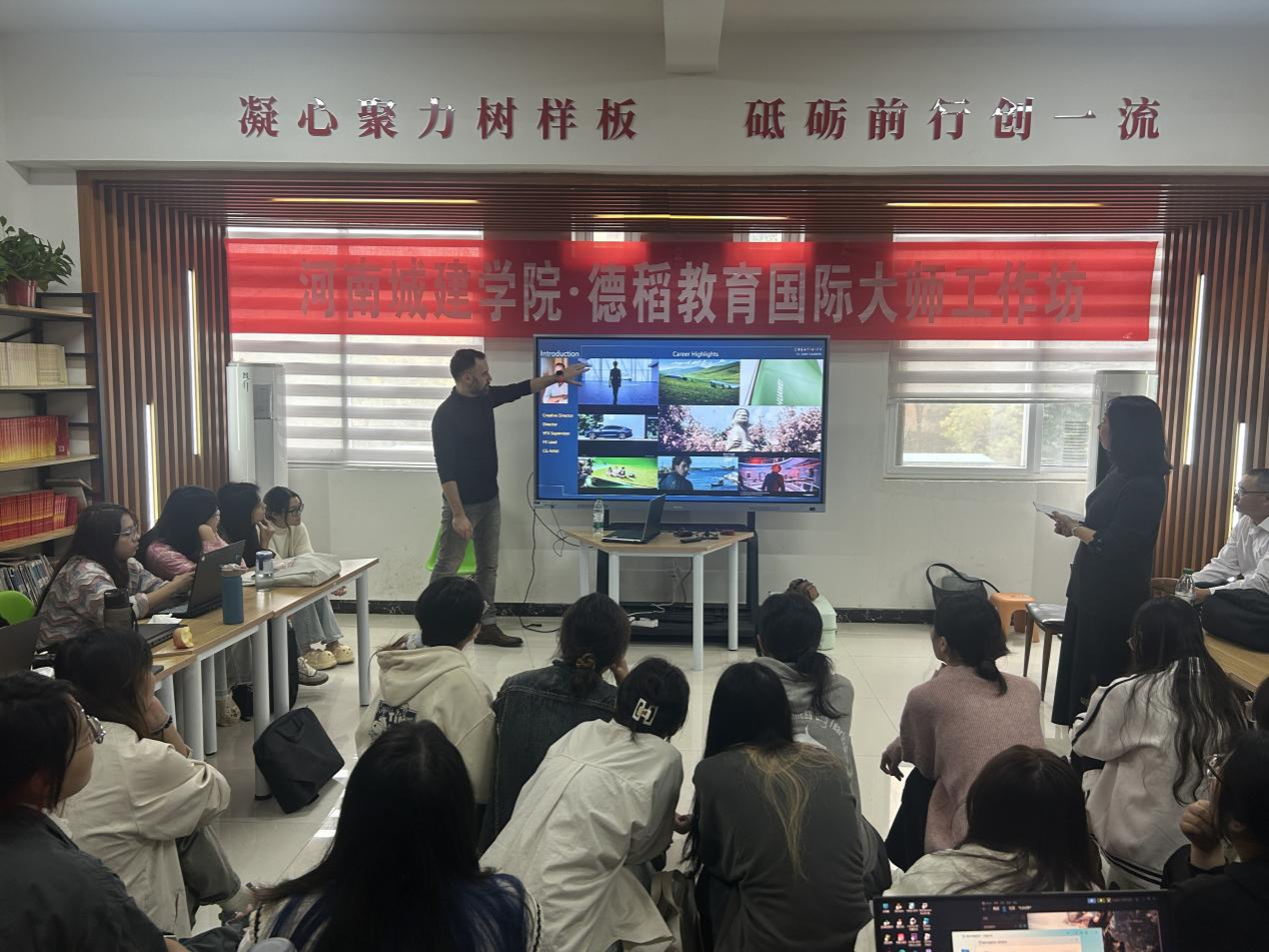 10月18日,上海德稻公司大师国际工作坊开课仪式在公司美荟楼524室举行,XC体育教务处处长王许涛出席仪式并讲话,XC体育经理汤喜辉做主持。王许涛对两位国际知名设计师的到来表示欢迎,他强调了本次工作坊课程以国际课程形式实施专业教学,提高同学们的设计技能,开拓同学们的国际视野,实现高校与行业共同发展。