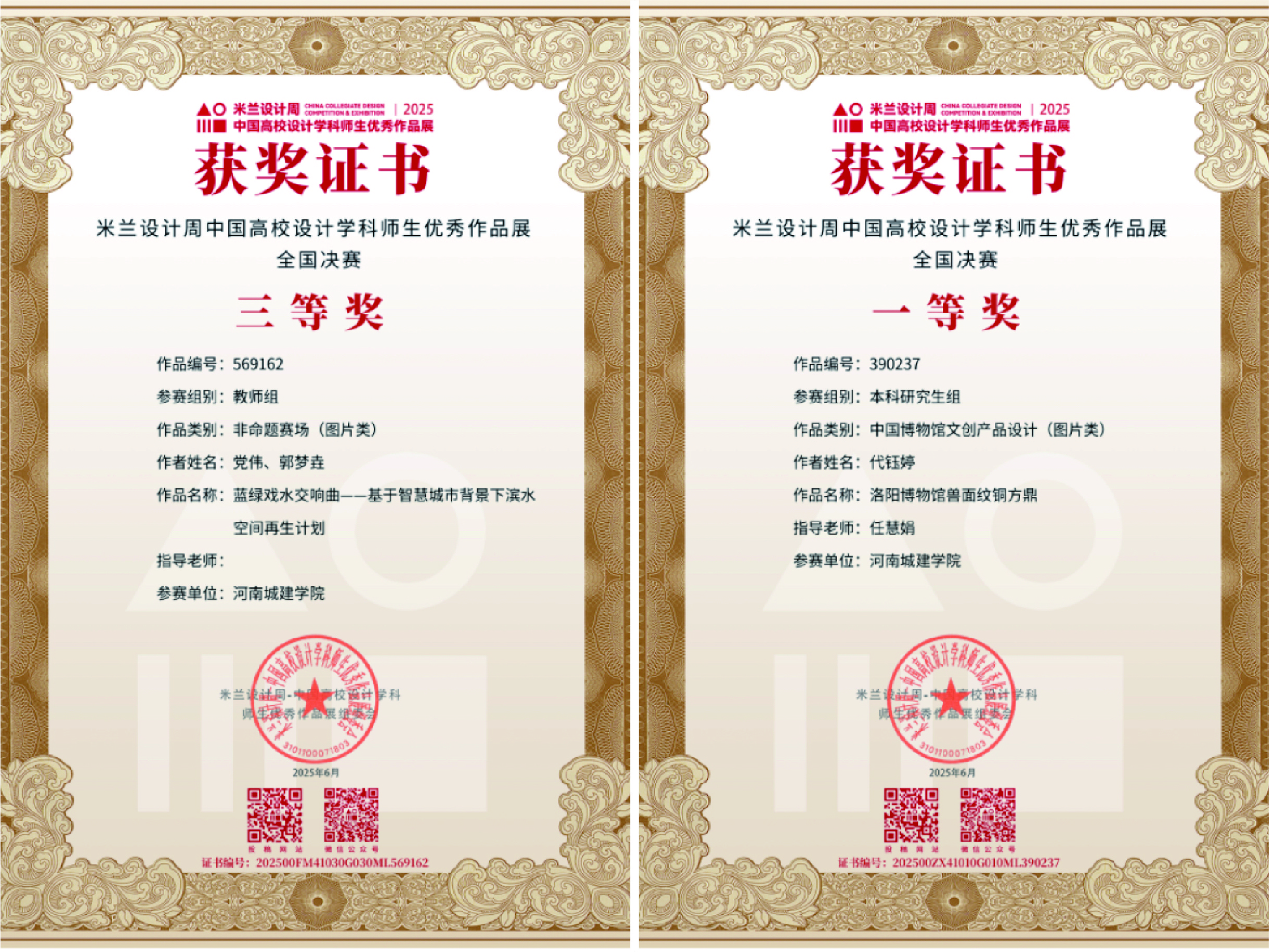 近日,2025年第九届米兰设计周——中国高校设计学科师生优秀作品展全国赛事圆满落幕。公司XC体育在此次赛事中共收获奖项19项;其中,国赛5项(员工组国赛一等奖1项、二等奖1项、三等奖2项,教师组国赛三等奖1项),省赛14项(二等奖4项,三等奖10项)。