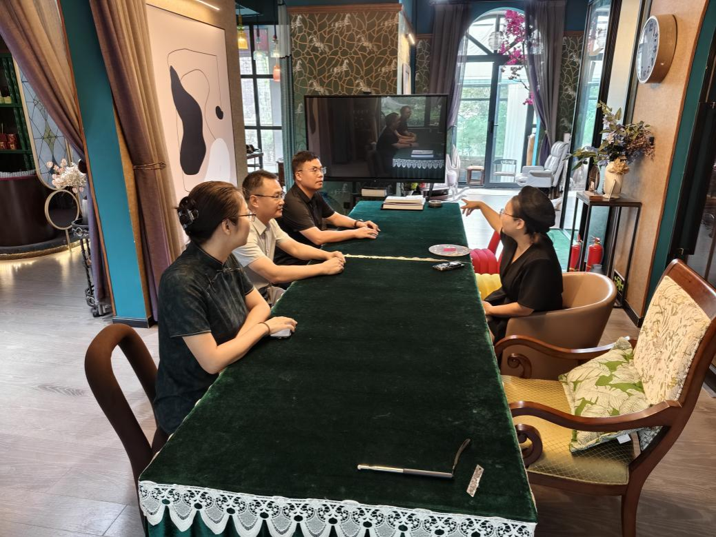 在企业方负责人的陪同下,公司一行参观了各公司的设计部、材料展厅、施工工艺样板间及竣工项目实景,切身感受了企业的设计理念、业务流程与技术创新应用。企业方展示了企业在室内设计、软装陈设、智能家居一体化解决方案等领域的综合实力。