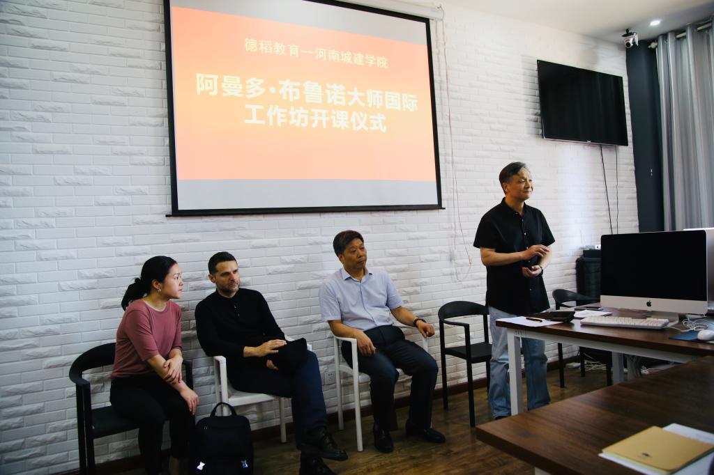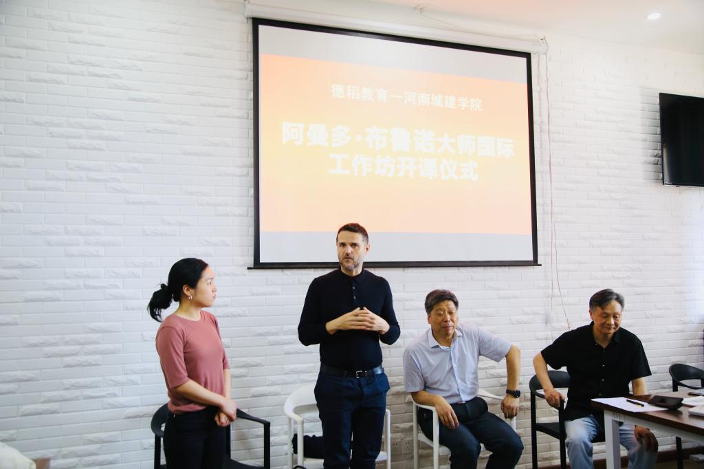 本着“汇聚世界大师、采集全球智慧、培育行业精英、助力企业发展”的教育理念,为提高环境设计专业员工的设计技能,开拓同学们的国际视野,以国际课程形式实施专业教学,实现高校与行业共同发展,XC体育与德稻教育集团合作开展的大师工作坊于5月22日上午在文管校区524教室如期开幕,为期5天,副董事长赵金安、经理陈玉兴、副经理汤喜辉及室内设计专业部分师生参加开课仪式。