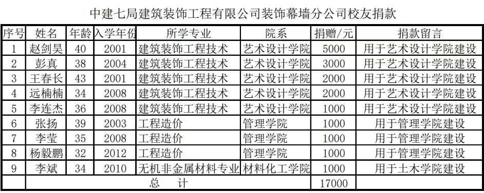 中建七局建筑装饰工程有限公司装饰幕墙分公司捐款